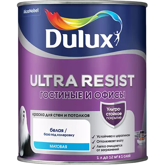 Обратите внимание на линейку новых красок Дулюкс Ультра Резист, в данной обновленной линейки Ультра резист краски - для внутренних работ для стен в кухне и санузле, а также специальная краска с добавлением ионов серебра и повышенным классом стойкости и истиранию поверхности. следующая краска из коллекции Ультра Резист это краска для Гостиных и офисов Dulux Ultra Resist, повышенная стойкость краски сохранит ваш бюджет и интерьер вы помещении, гораздо дольше чем другие аналоги. Для наружных и внутренних работ по металлу и дереву - алкидные краски. Отделку фасадов жилых зданий и прочих сооружений лучше проводить фасадными красками. Отлично предохранят дерево от гниения, воздействия влаги и прочих атмосферных влияний тонирующие покрытия. Продлить срок службы любых материалов из дерева или металла помогут защитные покрытия и лаки Дюлакс. Устранить дефекты поверхности, а также улучшить адгезию краски помогут грунтовки. Воплотить самые необычные дизайнерские цветовые решения легко с декоративными покрытиями DULUX путем колеровки краски.