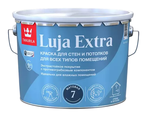 Серия красок Tikkurila Luja обладает высокой влагостойкостью и рекомендуются к применению в местах с большой влажностью. В составе красок присутствуют специальные добавки, которые не дают появляться плесени и грибку. Краски Тиккурила Луя могут подвергаться воздействиям сильных дезинфицирующих и моющих средств, хорошо зарекомендовали себя для нанесения в медицинских учреждениях. Может применяться для окраски потолков и стен, которые будут часто мыться или в местах с высокой эксплуатационной нагрузкой.