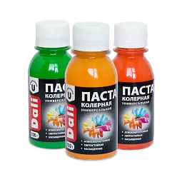 Современные красители для ручного колерования производятся в виде паст, красок и сухих составов. Каждый из этих типов имеет своё назначение и специфику применения. Колерные пасты наиболее удобны в использовании, так как в процессе их смешивания с краской можно регулировать оттенок краски. Существуют как универсальные пасты, подходящие для различных типов краски, так и разработанные специально для отдельных категорий красок. Однако такие красители имеют один недостаток - из-за неравномерной насыщенности пасты конечный результат колеровки может быть далёк от ожидаемого.