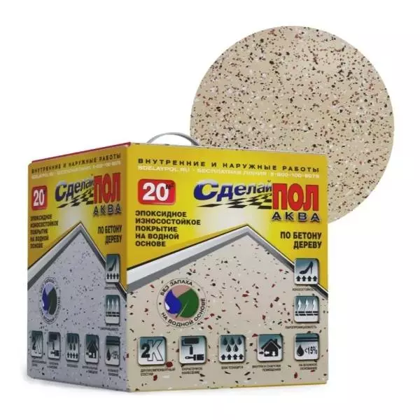 Эпоксидная краска смешивается из двух компонентов прямо перед нанесением и образует невероятно долговечное покрытие, обладает влагонепроницаемыми свойствами, легко наносится и позволяет обрабатывать как напольные, так и потолочные поверхности. Кроме того эпоксидная краска абсолютно экологически безопасна. Здесь особо стоит отметить краску Сделай Пол Эталон эпоксидное двухкомпонентное покрытие для пола.