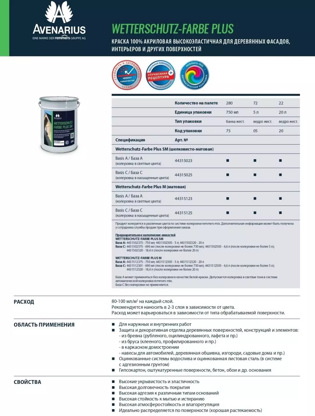 Avenarius Wetterschutz Farbe Plus Краска акриловая шелковисто-матовая для деревянных фасадов, интерьеров и других поверхностей