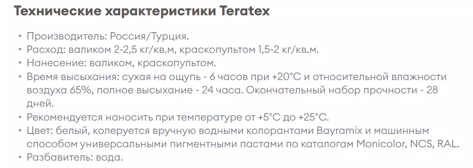 Bayramix Teratex очень проста в нанесении, что делает доступным её использование самостоятельно, без помощи профессиональных штукатуров. Перед нанесением, убедитесь, что поверхность достаточно ровная и чистая. Предварительно подготовьте поверхность, укрепив её проникающим грунтом «Астар Укрывающий» или «Астар Кварцевый», заколерованными в цвет финишного покрытия при необходимости. Добавление пигмента должно быть не более чем 5% от общей массы.
