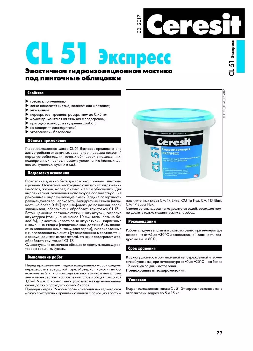 Церезит CL 51 водонепроницаемая и быстротвердеющая мастика, отличающаяся эластичностью и экологичностью, изготовлена на базе модифицированной синтетической смолы.