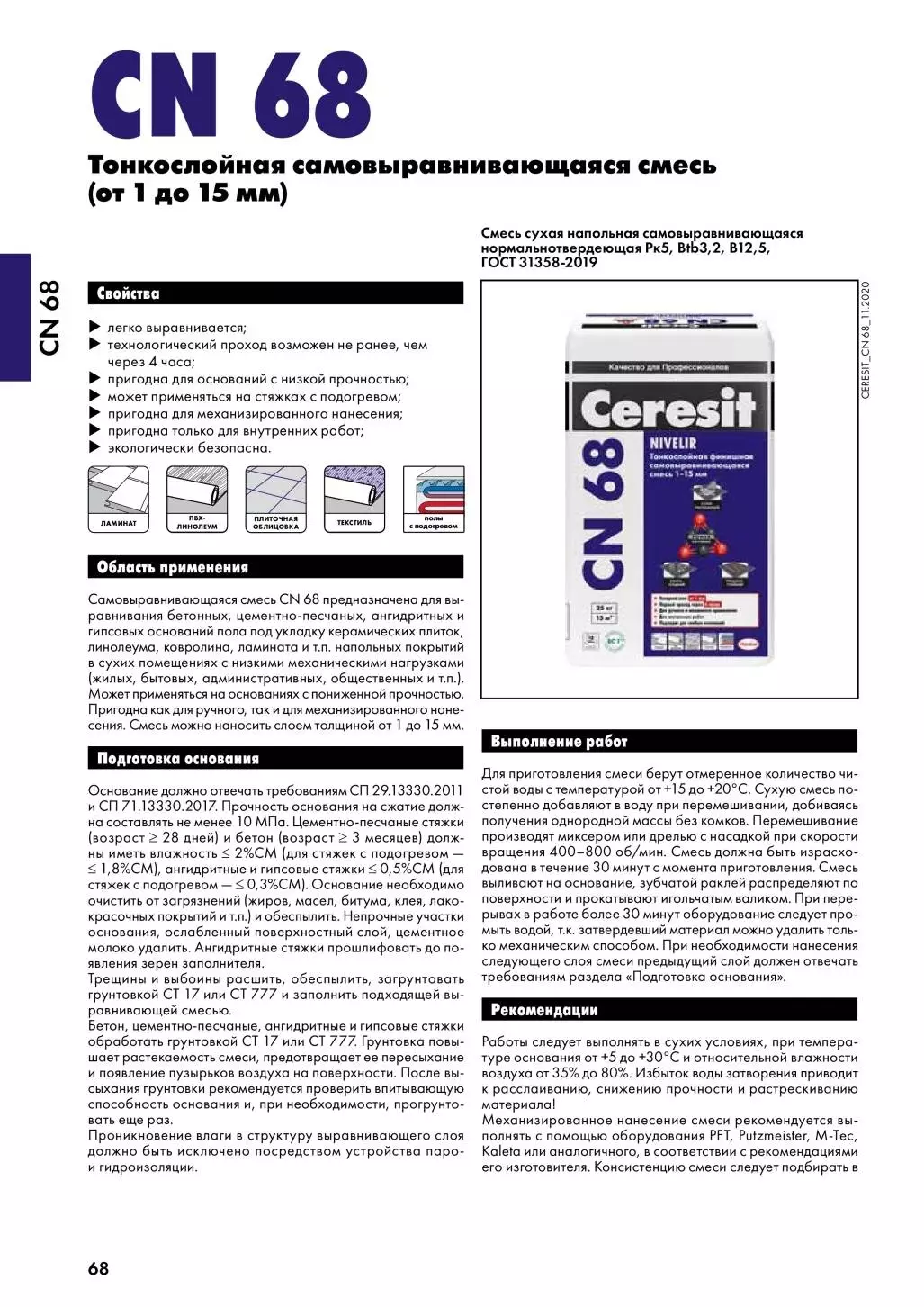 Ceresit CN 68 смесь тонкослойная самовыравнивающаяся для пола (толщина слоя 1-15 мм)