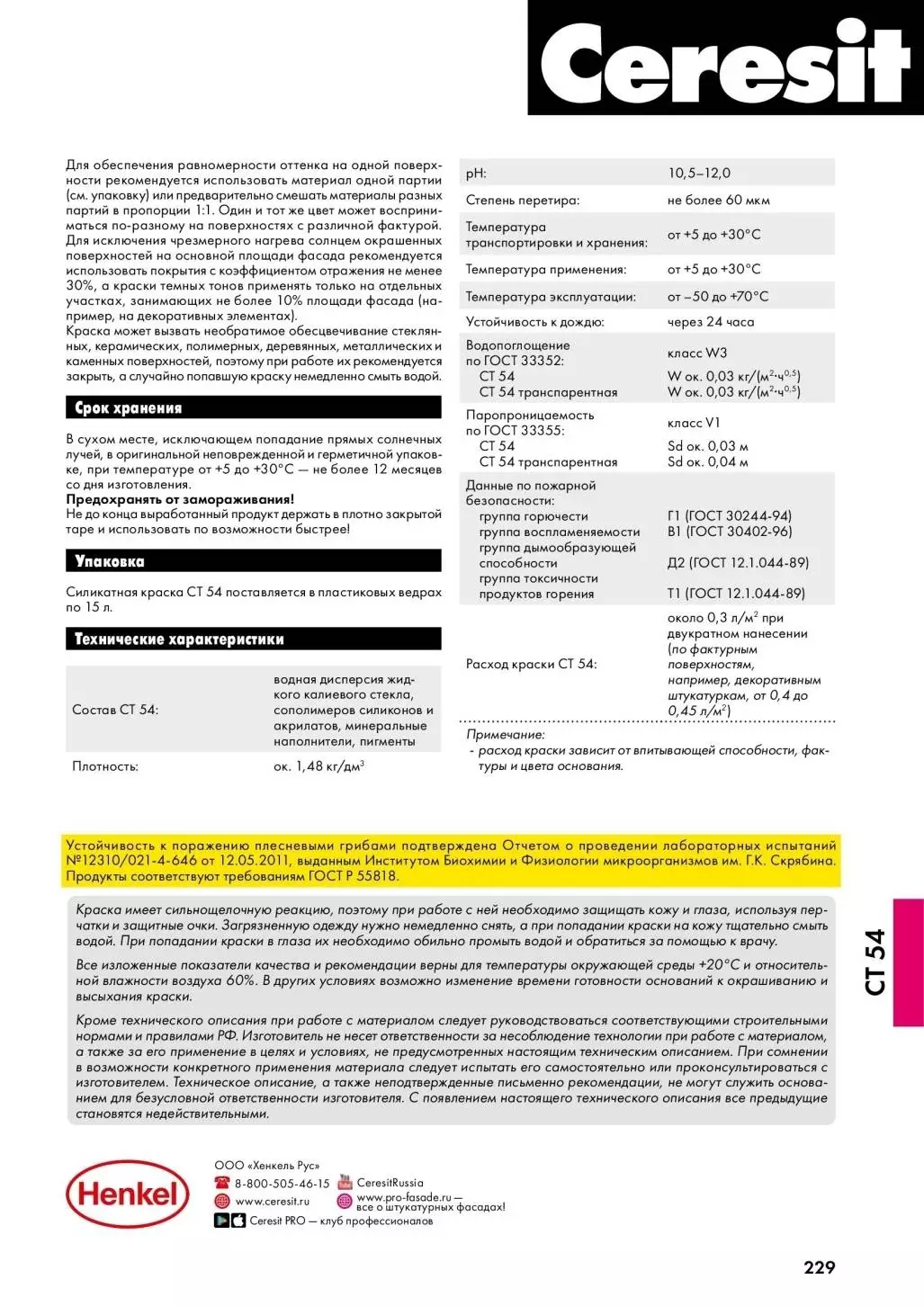 Ceresit CT 54 Краска фасадная силикатная, атмосферостойкая