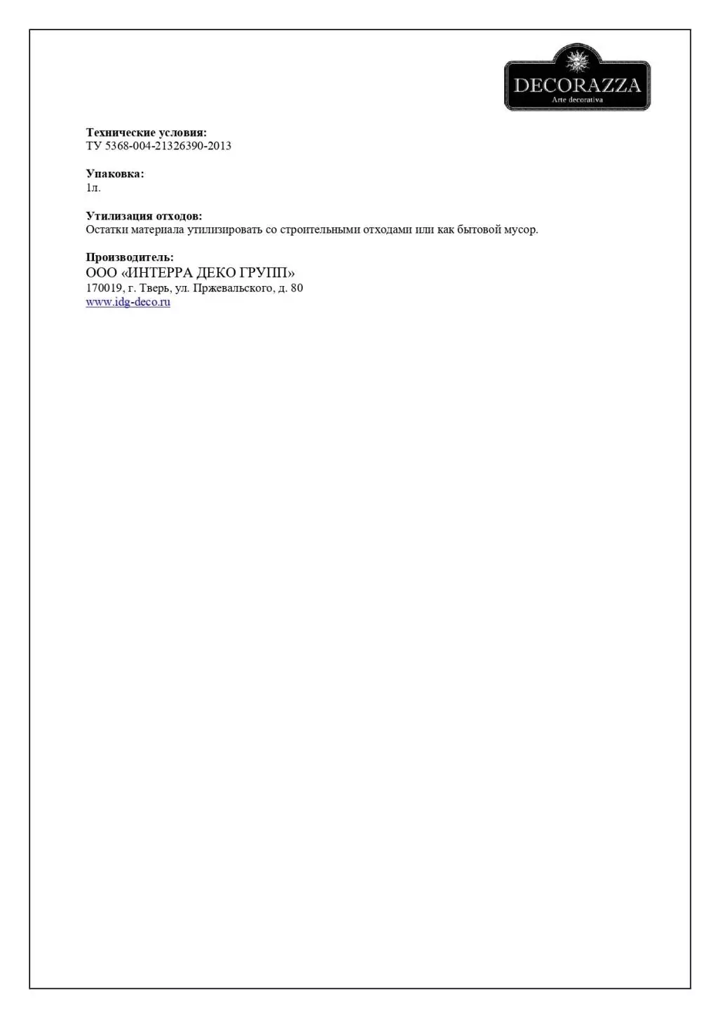 Гидрофобизирующая пропитка от Decorazza используется для защиты любых декоративных поверхностей в условиях повышенной влажности и прямого контакта с водой. Изготовленная на основе водной дисперсии полимера пропитка отлично впитывается в структуру поверхности, образуя защитное покрытие, которое препятствует проникновению влаги в поры и капилляры материала, создавая, при этом дышащий слой, который препятствует развитию грибков, плесени, водорослей, а также других биопоражений, характерных для влажных условий эксплуатации. Decorazza Finitura имеет абсолютно бесцветную основу, поэтому беспокоиться об изменении внешнего вида декоративного покрытия не стоит. Пропитка чрезвычайно удобна в работе и легко наносится, не оставляя разводов. После высыхания бесцветная лазурь Декоразза Финитура продлевает срок службы поверхности, а также надолго сохраняет ее эстетическую привлекательность. В состав пропитки не входят токсичные элементы, поэтому она абсолютно безопасна для человека.