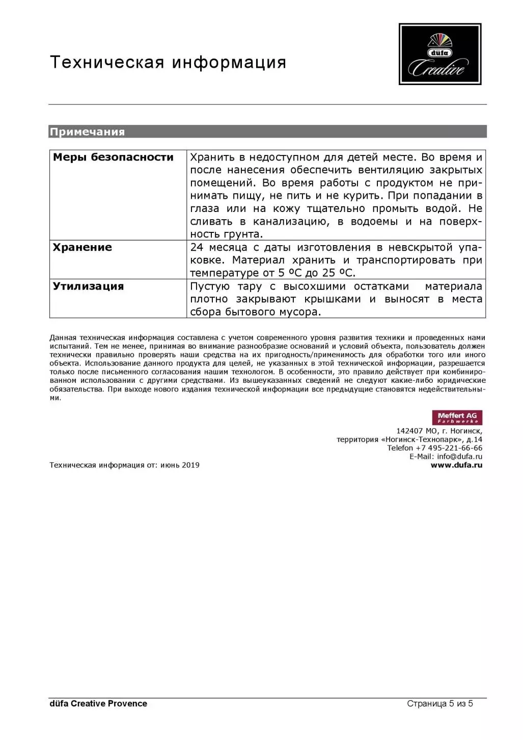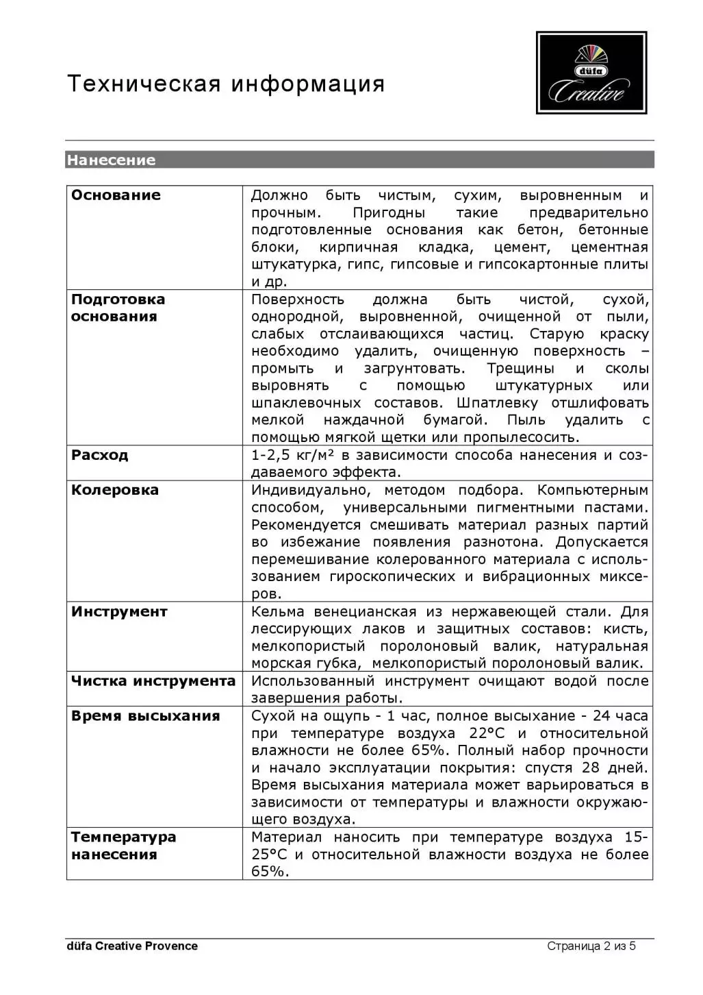 Температура нанесения: от +15 до +25°С, влажность ≤ 65%,