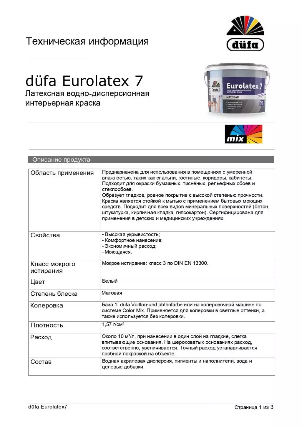 Краска Eurolatex 7 Предназначена для использования в помещениях с умеренной влажностью, таких как спальни, гостиные, коридоры, кабинеты.