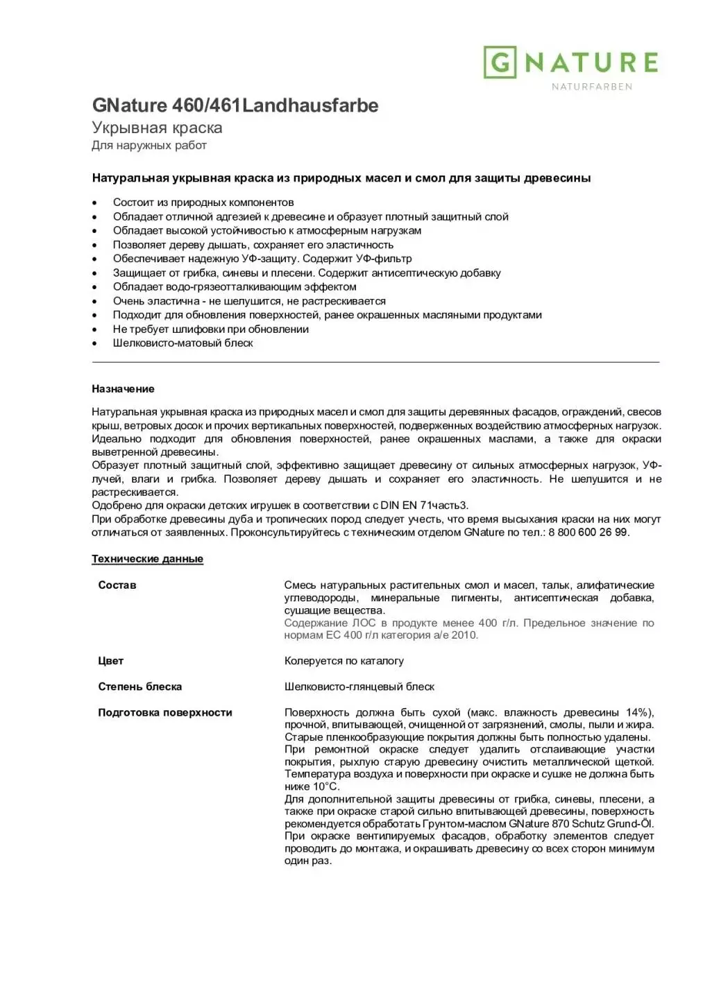При окраске фасада и других наружных поверхностей, для дополнительной защиты древесины мягких пород (сосна, ель, кедр) от поражения грибками, плесенью и синевой, предварительно обработайте поверхность Грунтом-маслом GNature 870 Schutz Grund-Ol.