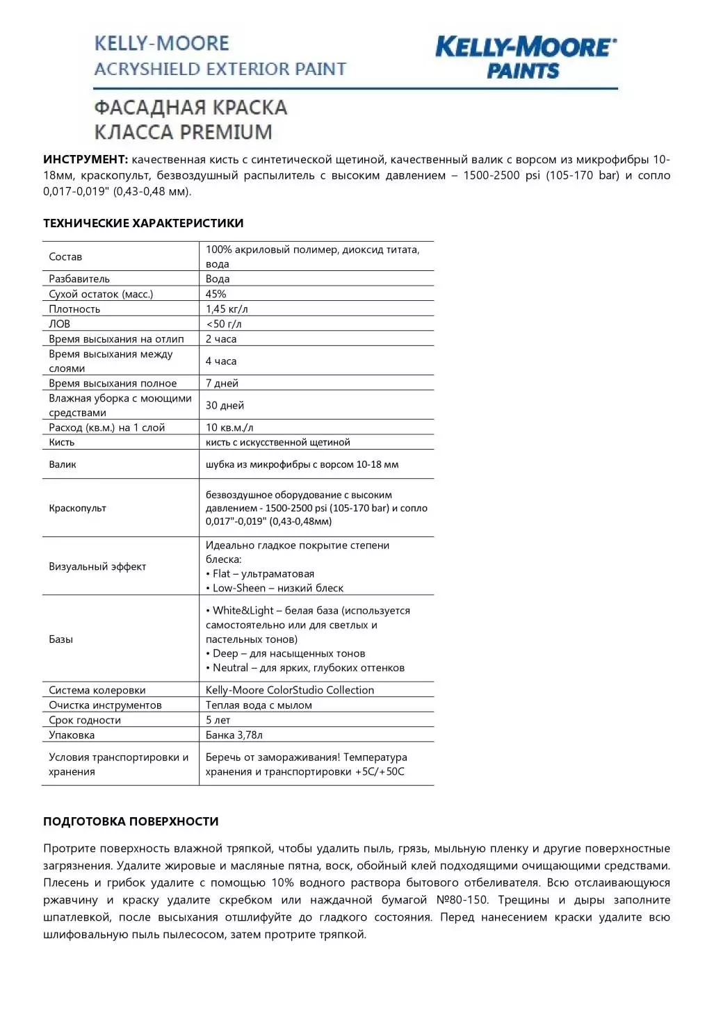Kelly Moore AcryShield Exterior Фасадная краска класса Premium ультраматовая