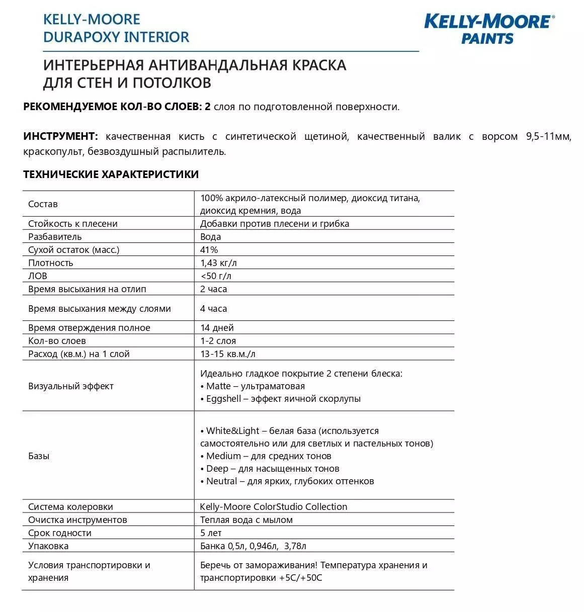 Kelly Moore DuraPoxy Interior Краска интерьерная суперпрочная антивандальная матовая