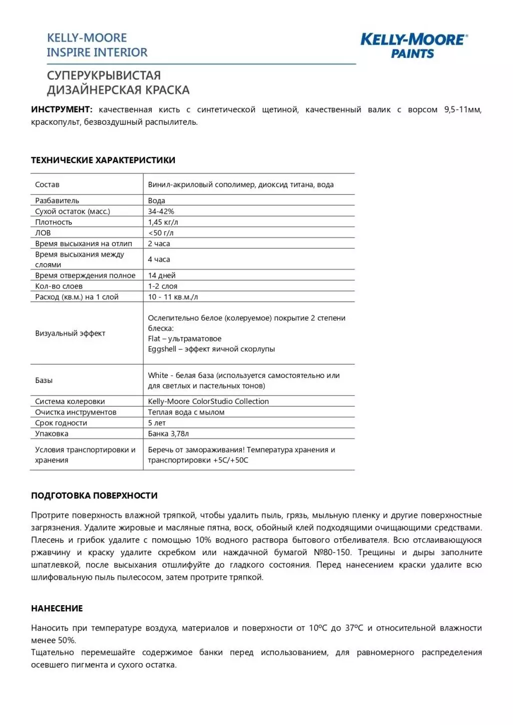 Kelly Moore Inspire Краска дизайнерская суперукрывистая полуматовая