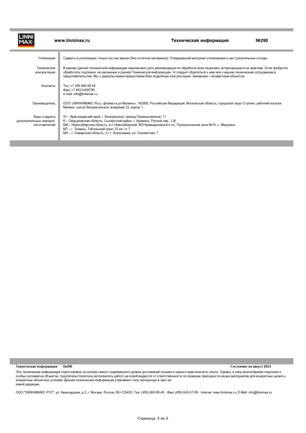 Linnimax 290 Master Klebe- und Spachtelmasse Клеевой состав для монтажа теплоизоляционных плит для внутренних и наружных работ