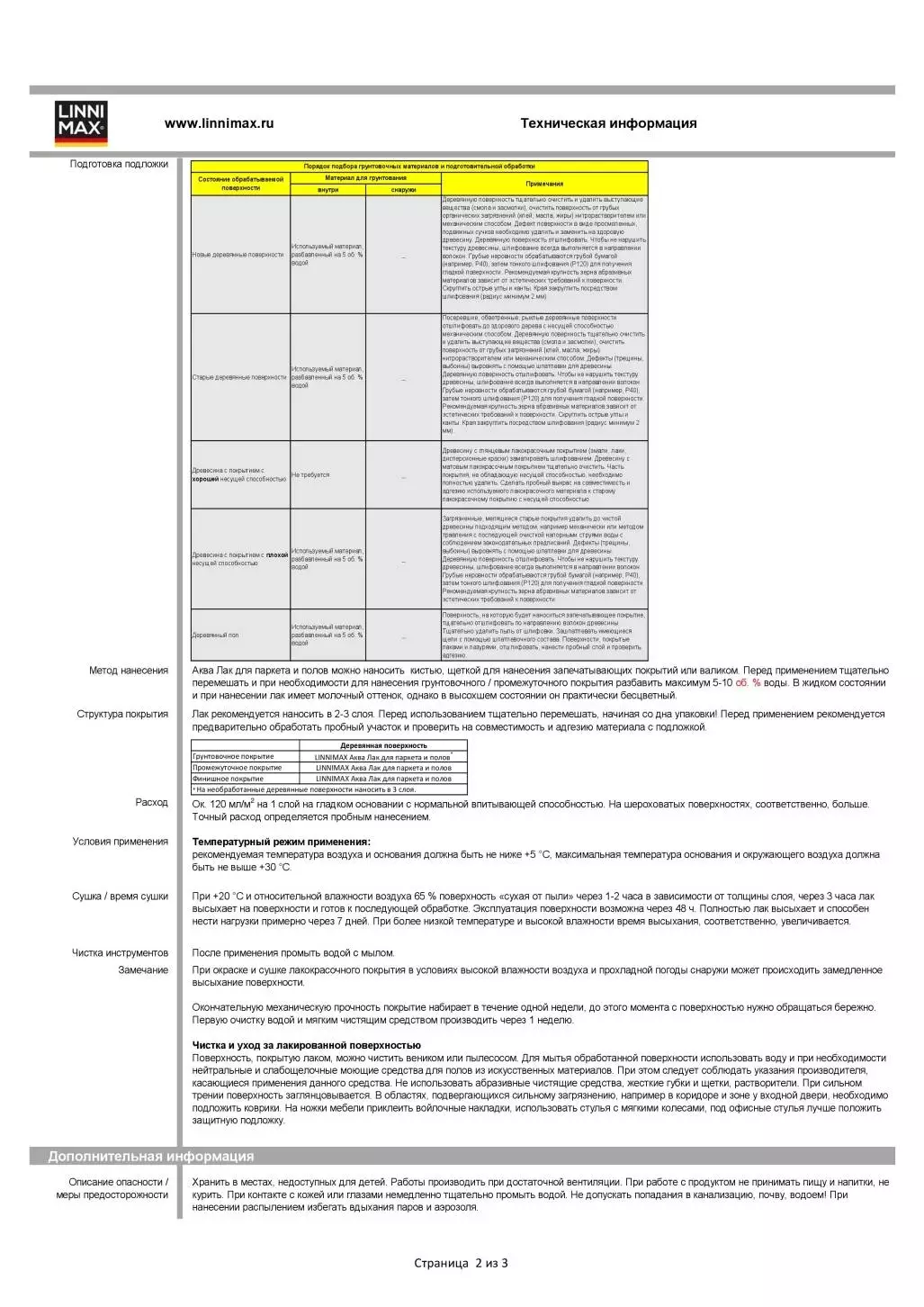 Лак рекомендуется наносить в 2-3 слоя. Перед использованием тщательно перемешать начиная со дна упаковки! Перед применением рекомендуется предварительно обработать пробный участок и проверить на совместимость и адгезию материала с подложкой.