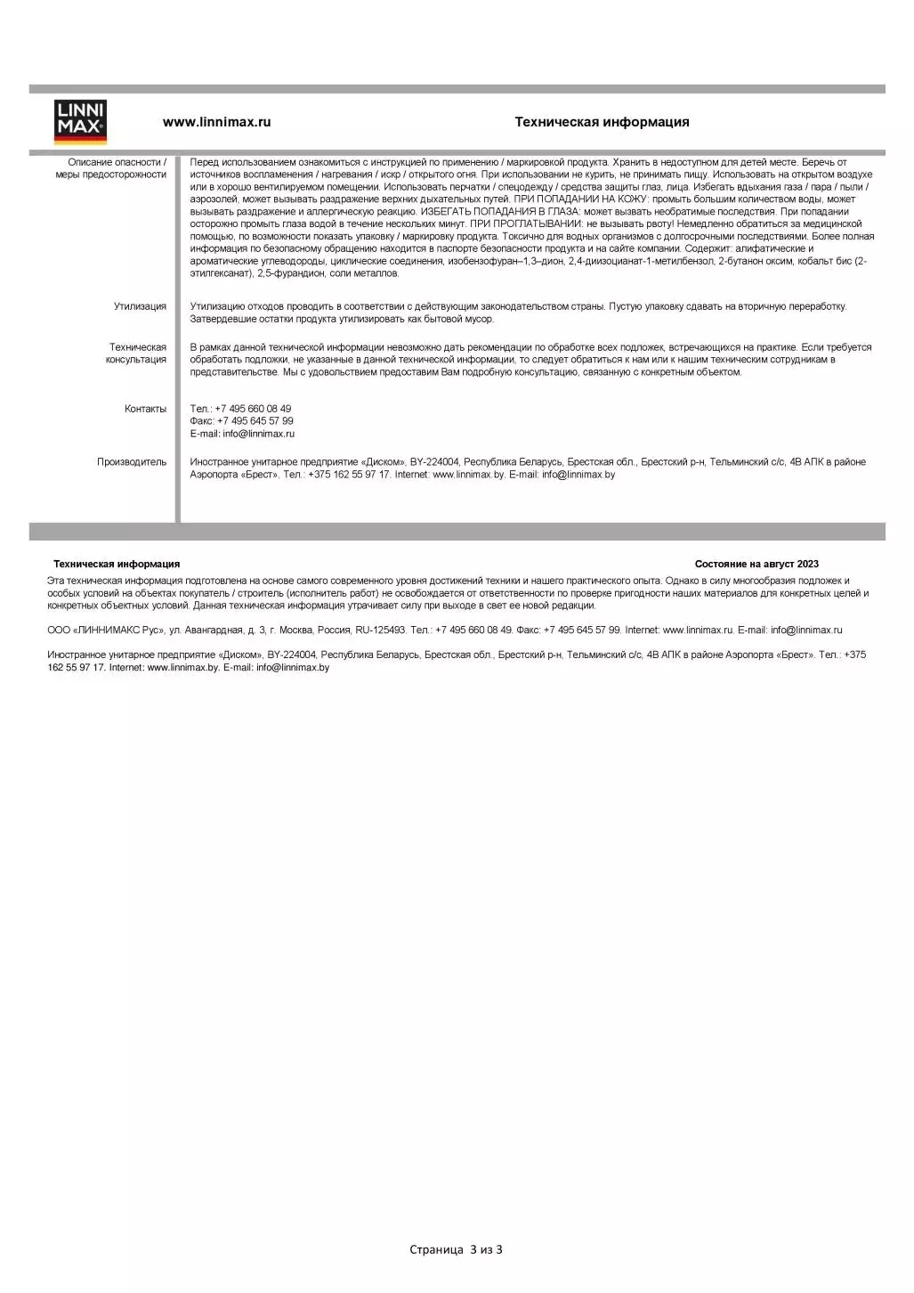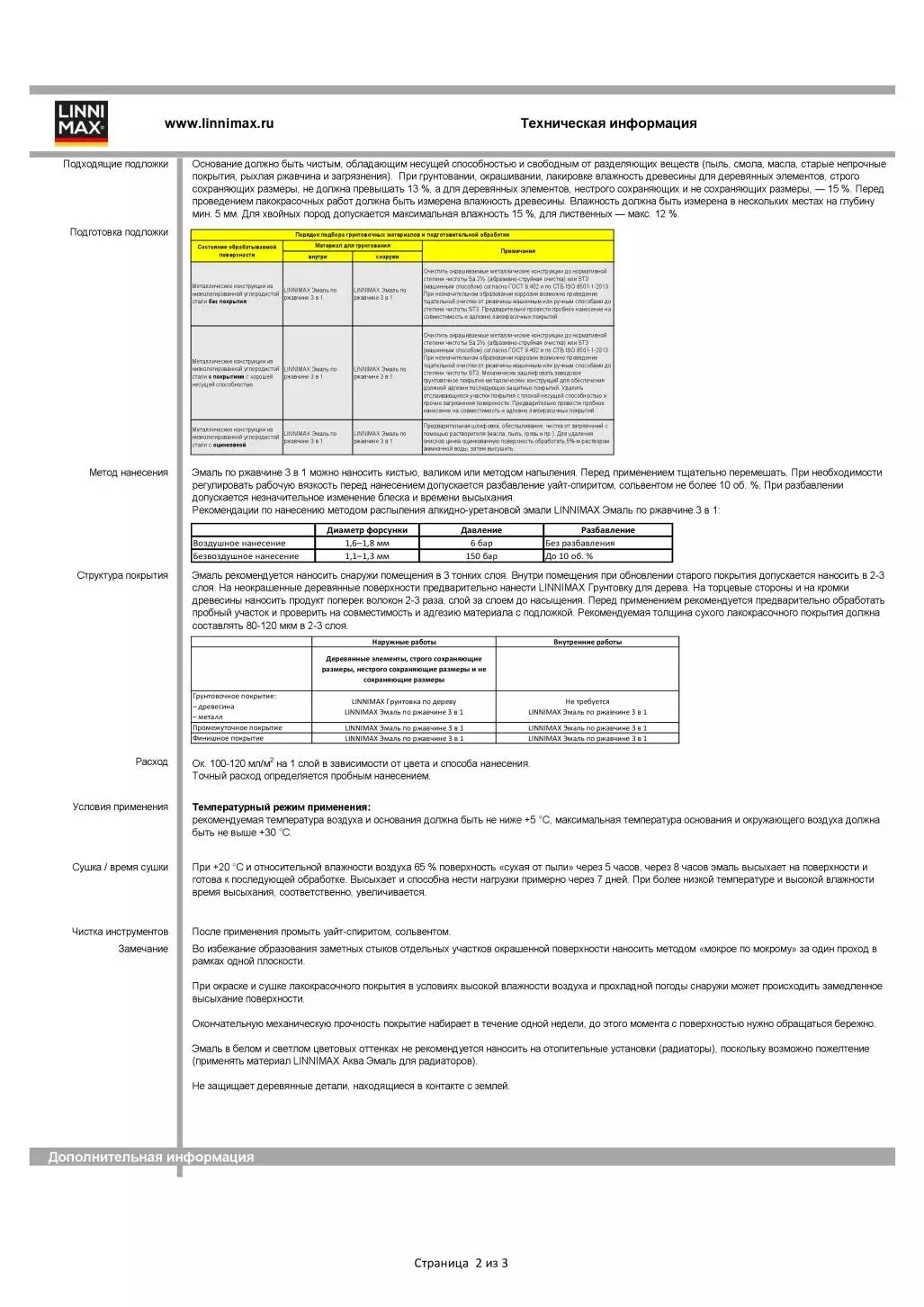 LINNIMAX Эмаль можно наносить кистью, валиком или методом напыления. Перед применением рекомендуется тщательно перемешать. Разбавление уайт-спиритом до 10% допускается.