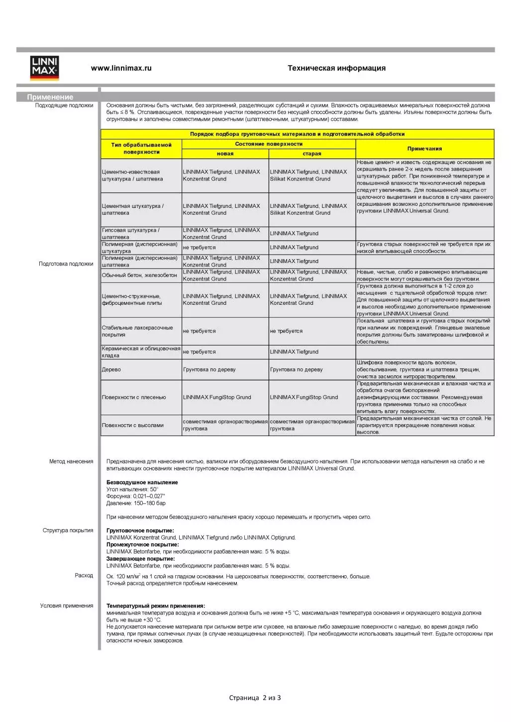 Не пригодна для окраски штукатурки с высокой долей известкового вяжущего растворных групп РI и PII DIN V 18550, наружной штукатурки газобетонных блоков. В рамках штукатурных систем утепления ETICS (СФТК/ЛШСУ) может быть использована только для окраски цоколя.