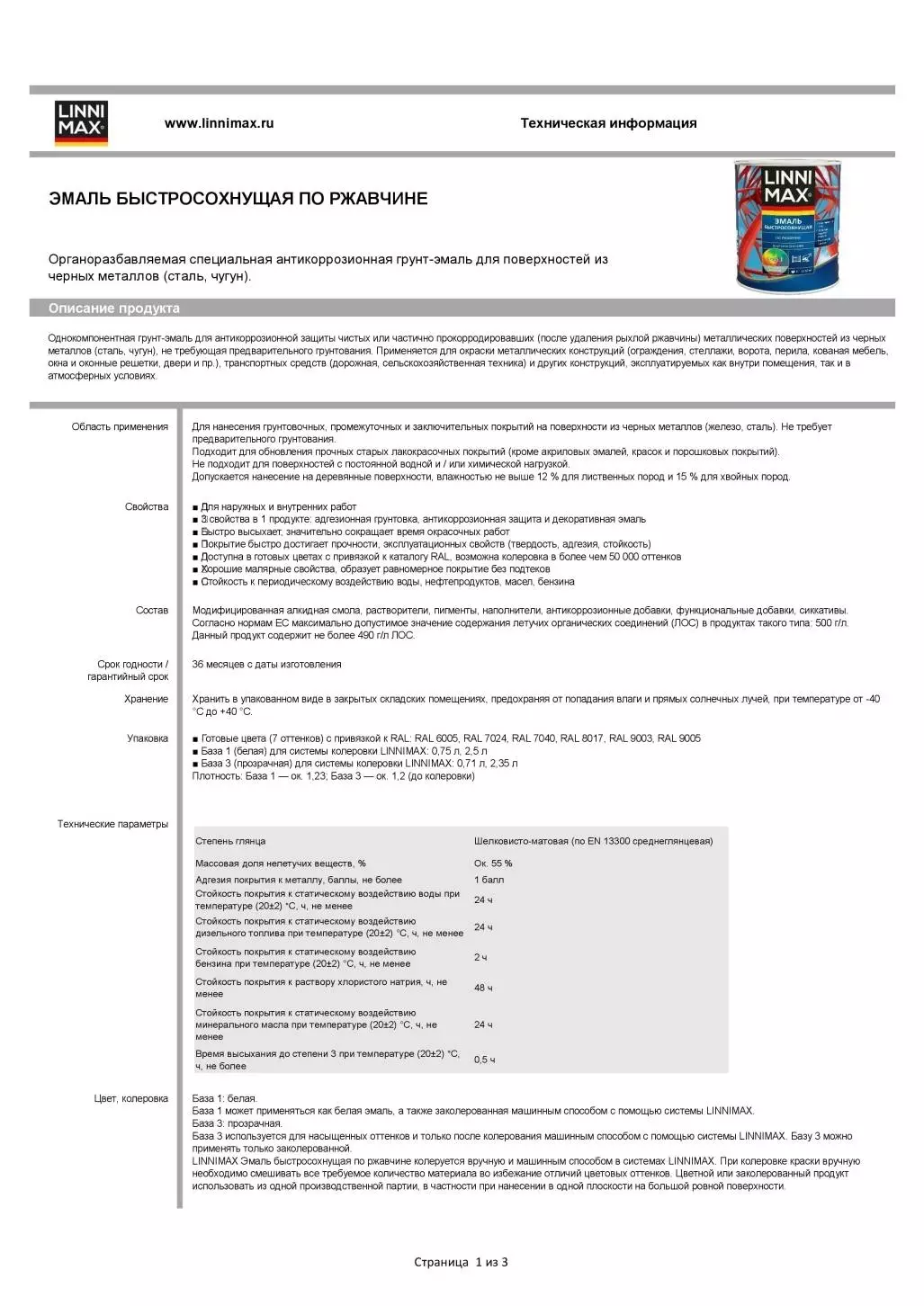 - 3 свойства в 1 продукте: адгезионная грунтовка, антикоррозионная защита и декоративная эмаль