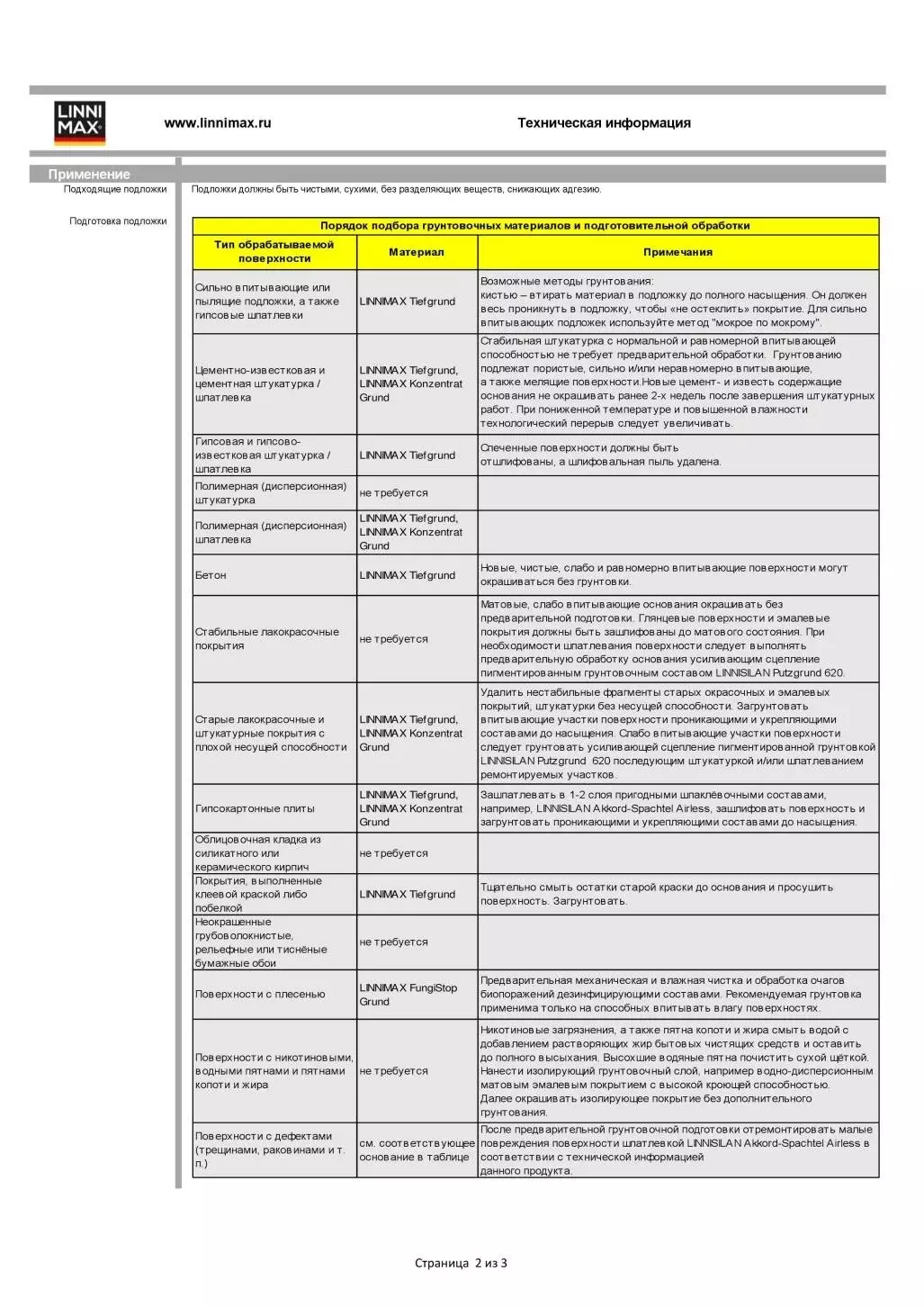 Продукт предназначен для компьютерной колеровки в системе LINNIMAX. Чтобы исключить возможную ошибку при колеровке, перед применением необходимо проверить точность цветового тона. На соприкасающиеся поверхности необходимо наносить материал из одной партии. Темным и насыщенным оттенкам присуща ограниченная укрывистость. При использовании таких оттенков рекомендуется предварительное нанесение пигментированных грунтовок либо кроющего покрытия на белой базе, заколерованной в максимально близкий оттенок к финишному цветовому тону. Чтобы получить покрытие с равномерным цветовым тоном, подложка должна обладать равномерной впитывающей способностью.