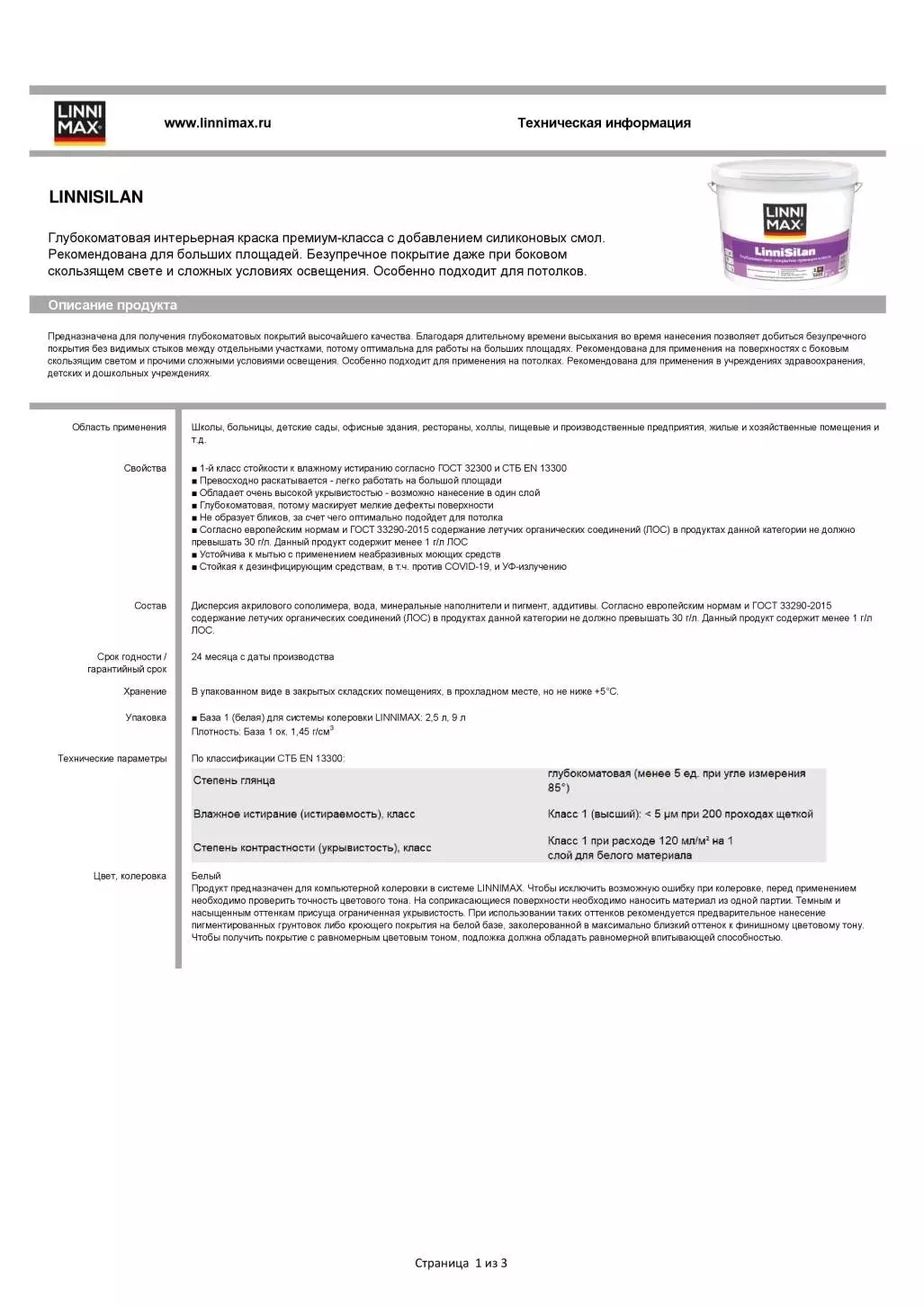 LINNIMAX LINNISILAN – это высококачественная глубокоматовая интерьерная краска премиум-класса, обогащенная силиконовыми смолами. Рекомендована для широких поверхностей, обеспечивая идеальное покрытие даже при боковом скользящем свете и сложных условиях освещения. Особенно эффективна для потолков.