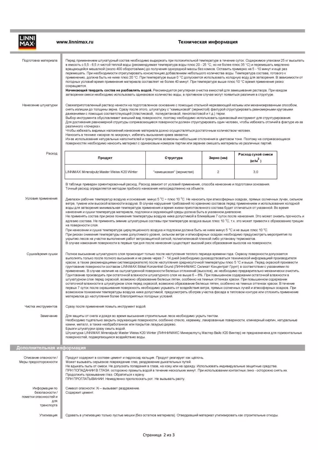 Linnimax Mineralputz Master Weiss K20 Winter Декоративный штукатурный состав для внутренних и наружных работ