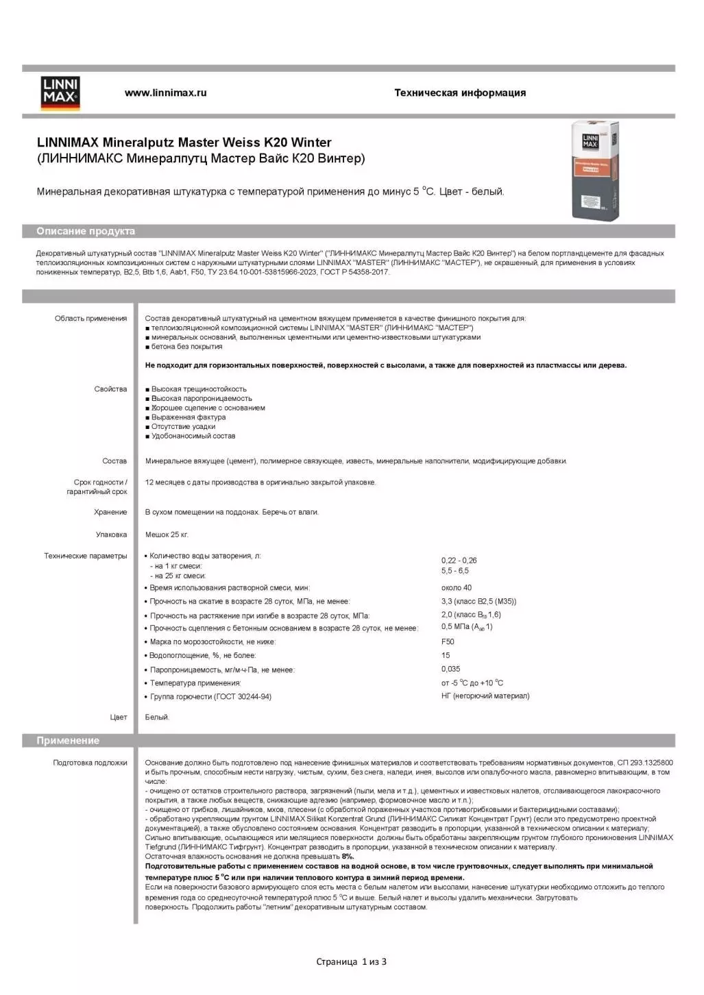 Основание должно соответствовать требованиям нормативных документов, СП 293.1325800, и быть чистым, сухим и способным нести нагрузку. Очистить от остатков строительного раствора, загрязнений, цементных и известковых налетов. Обработать укрепляющим грунтом LINNIMAX Silikat Konzentrat Grund при необходимости.