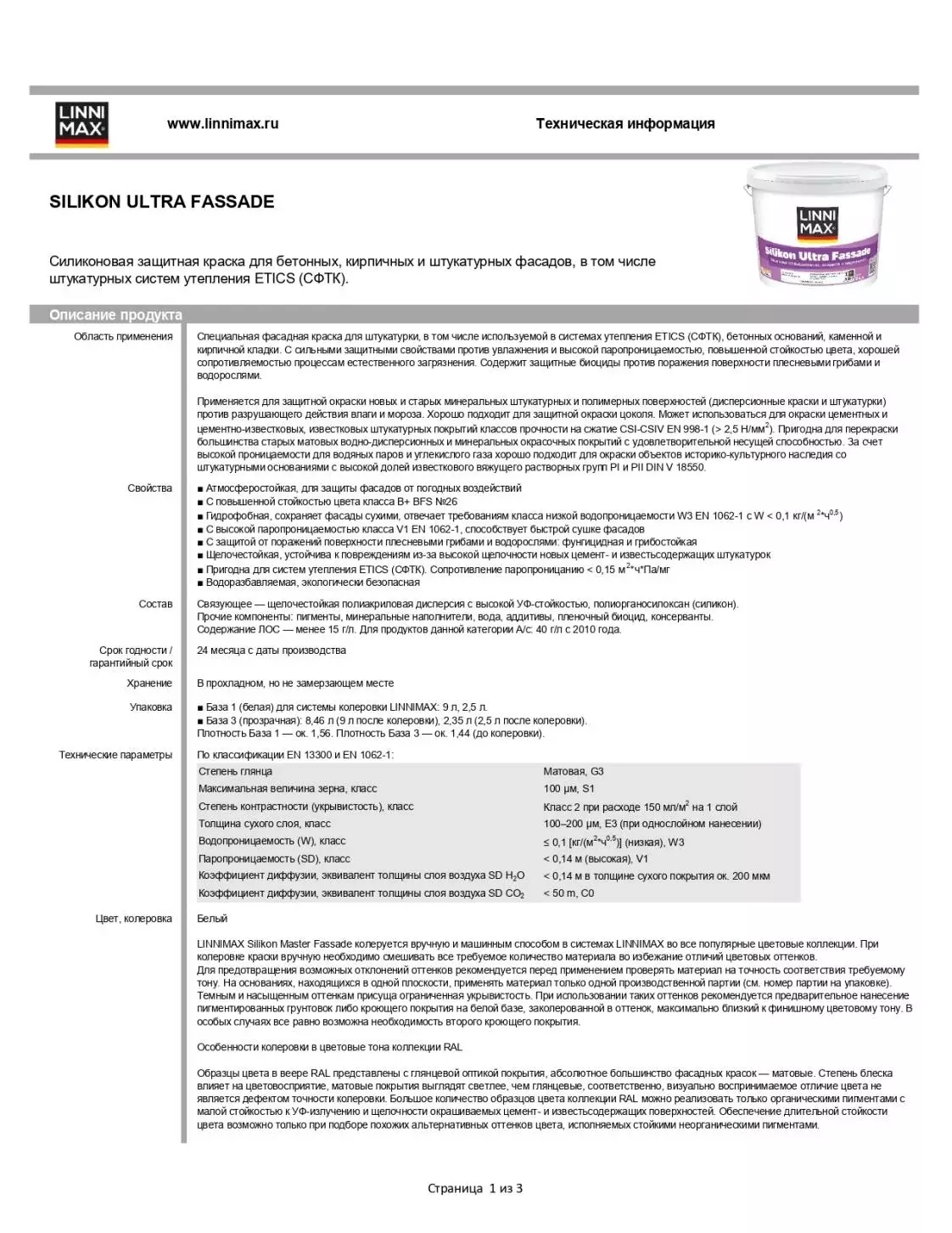 Linnimax Silikon Ultra Fassade Cиликоновая защитная краска для бетонных, кирпичных и штукатурных фасадов
