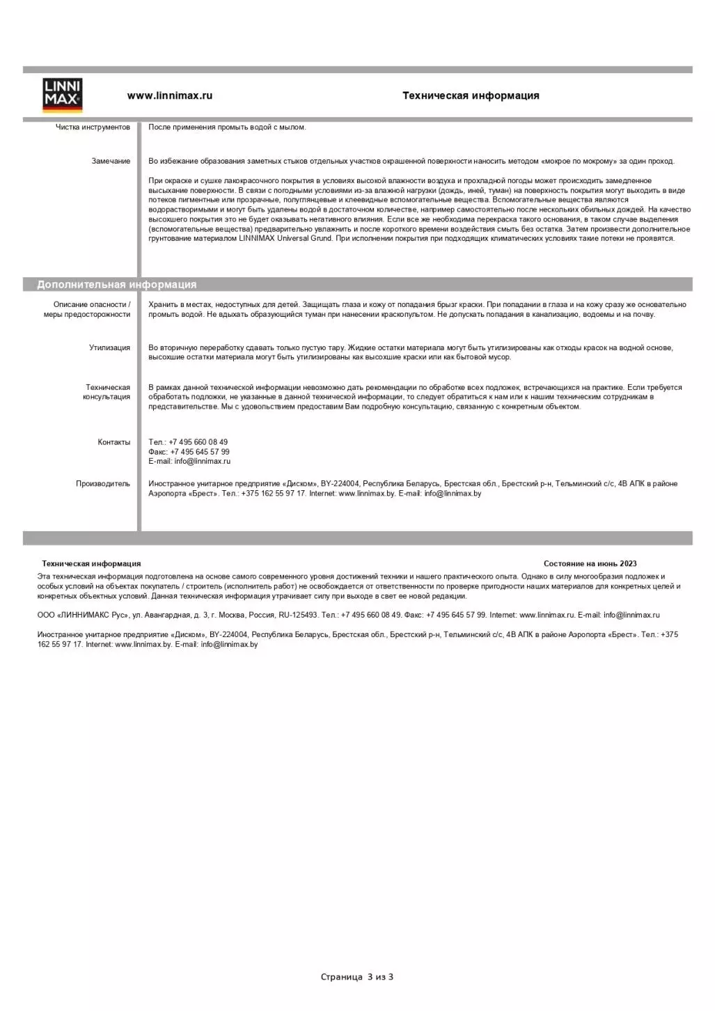 Температурный режим применения: минимальная температура воздуха и основания должна быть не ниже +5°C. Максимальная температура основания и окружающего воздуха должна быть не выше +30°C.
