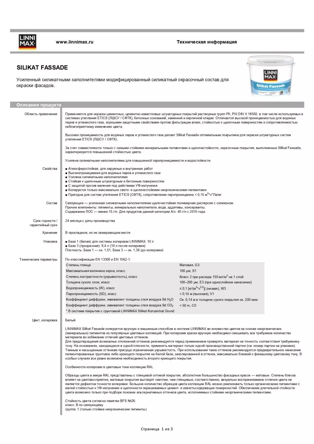 Linnimax Silikat Fassade Краска силикатно-модифицированная водно-дисперсионная для наружных работ.