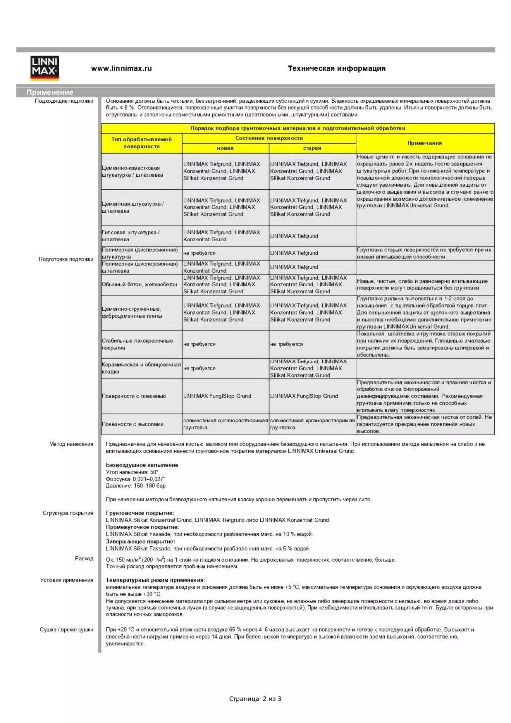 При нанесении методом напыления на слабо и не впитывающих основаниях нанести грунтовочное покрытие материалом LINNIMAX Universal Grund.
