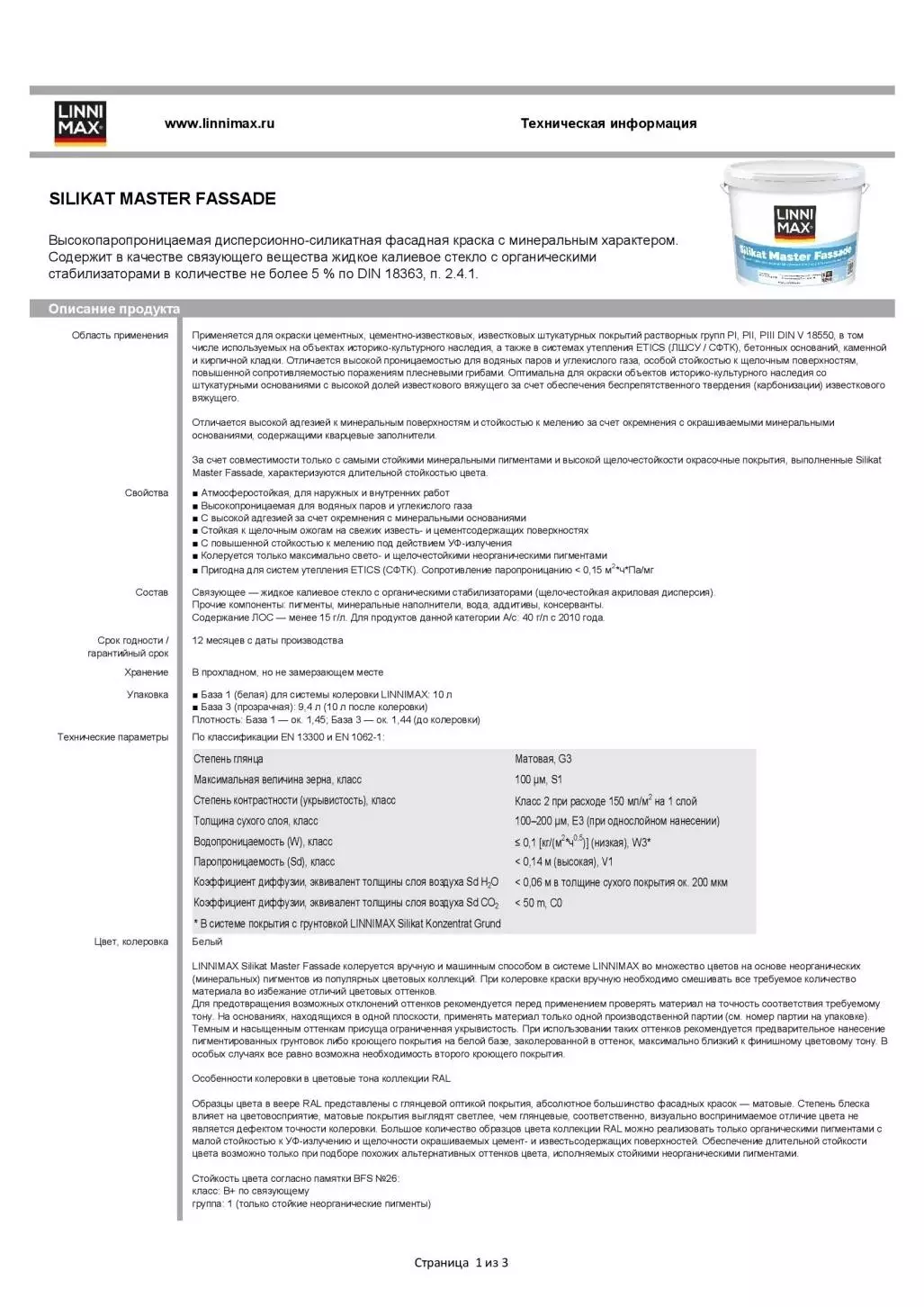 Linnimax Silikat Master Fassade Фасадная краска для наружных и внутренних работ
