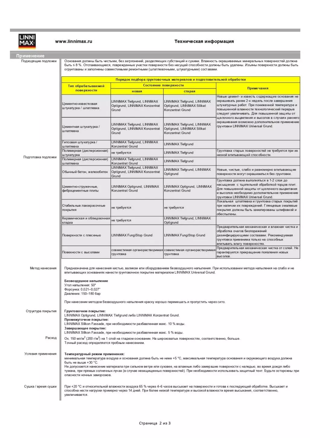 При нанесении методом напыления на слабо и не впитывающих основаниях нанести грунтовочное покрытие материалом LINNIMAX Universal Grund.
