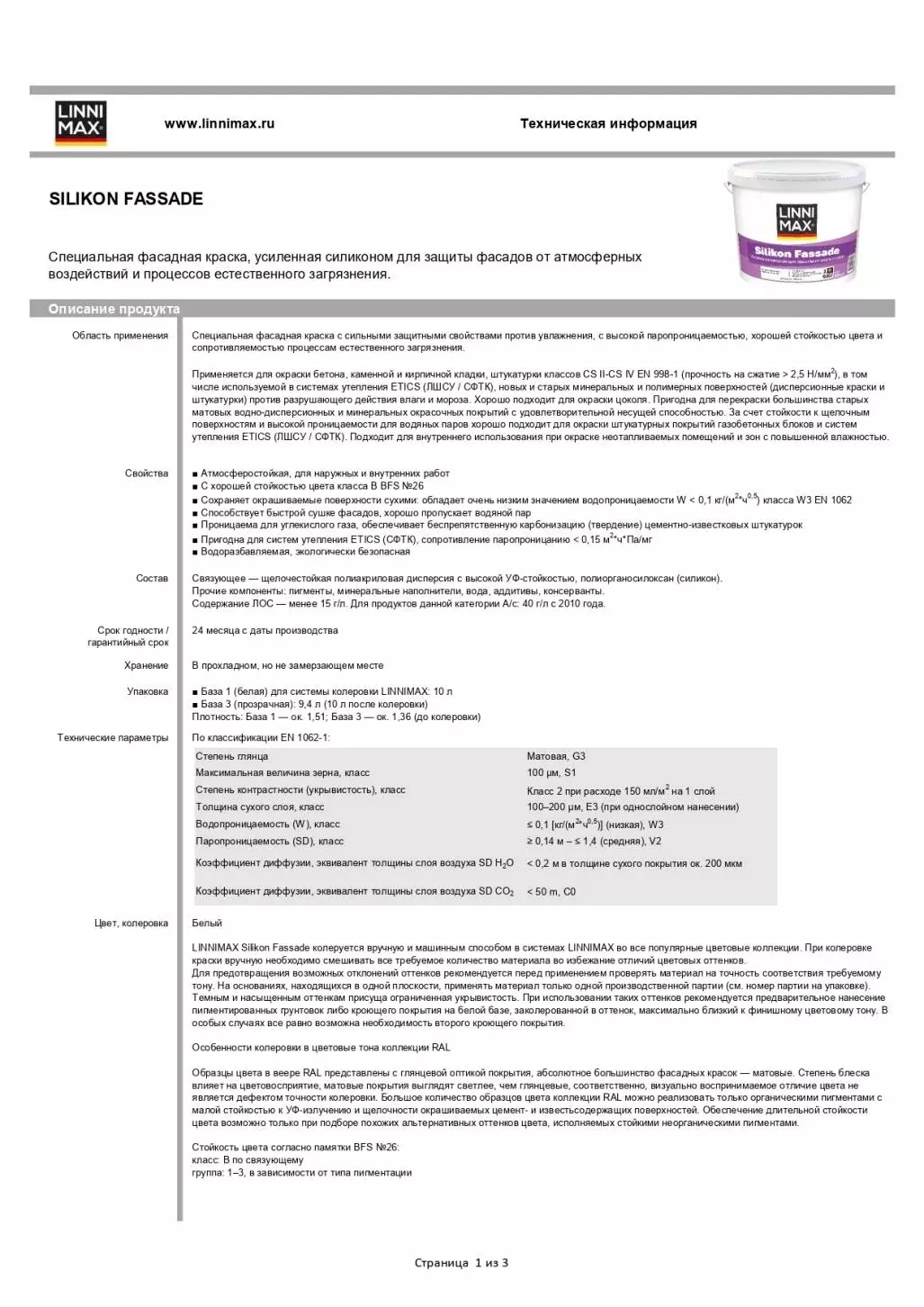 Linnimax Silikon Fassade Краска фасадная водно-дисперсионная силикон-модифицированная для наружных работ