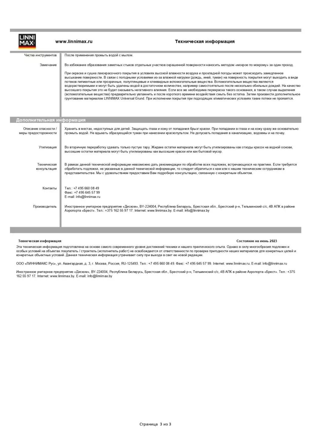 Температурный режим применения: минимальная температура воздуха и основания должна быть не ниже +5°C. Максимальная температура основания и окружающего воздуха должна быть не выше +30°C.
