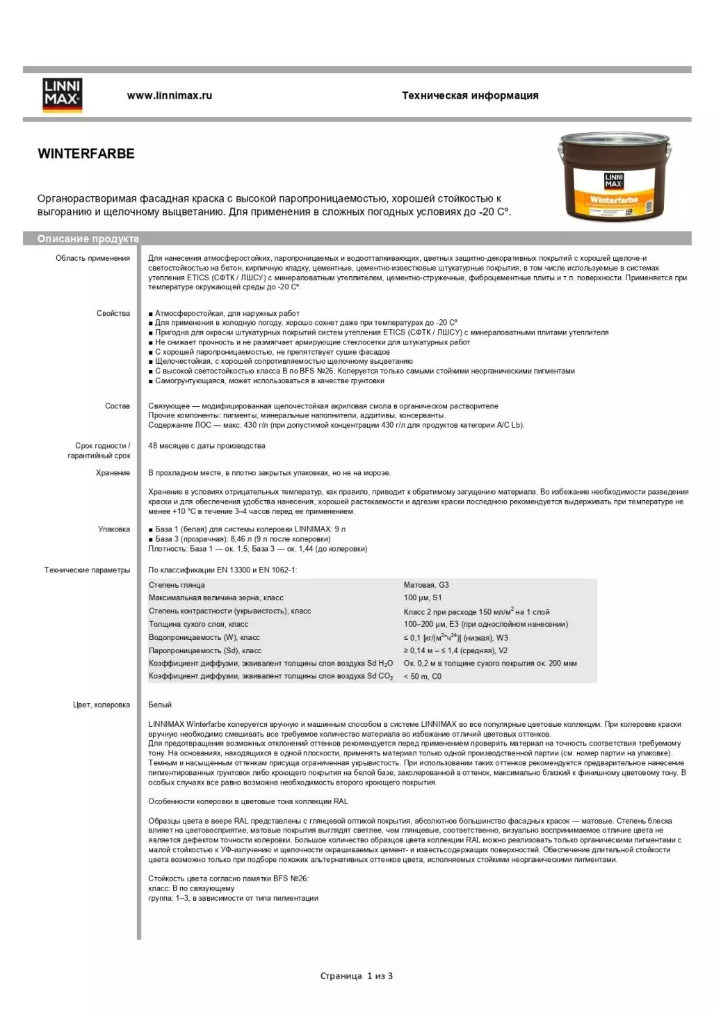 Linnimax Winterfarbe Фасадная всесезонная органорастворимая краска