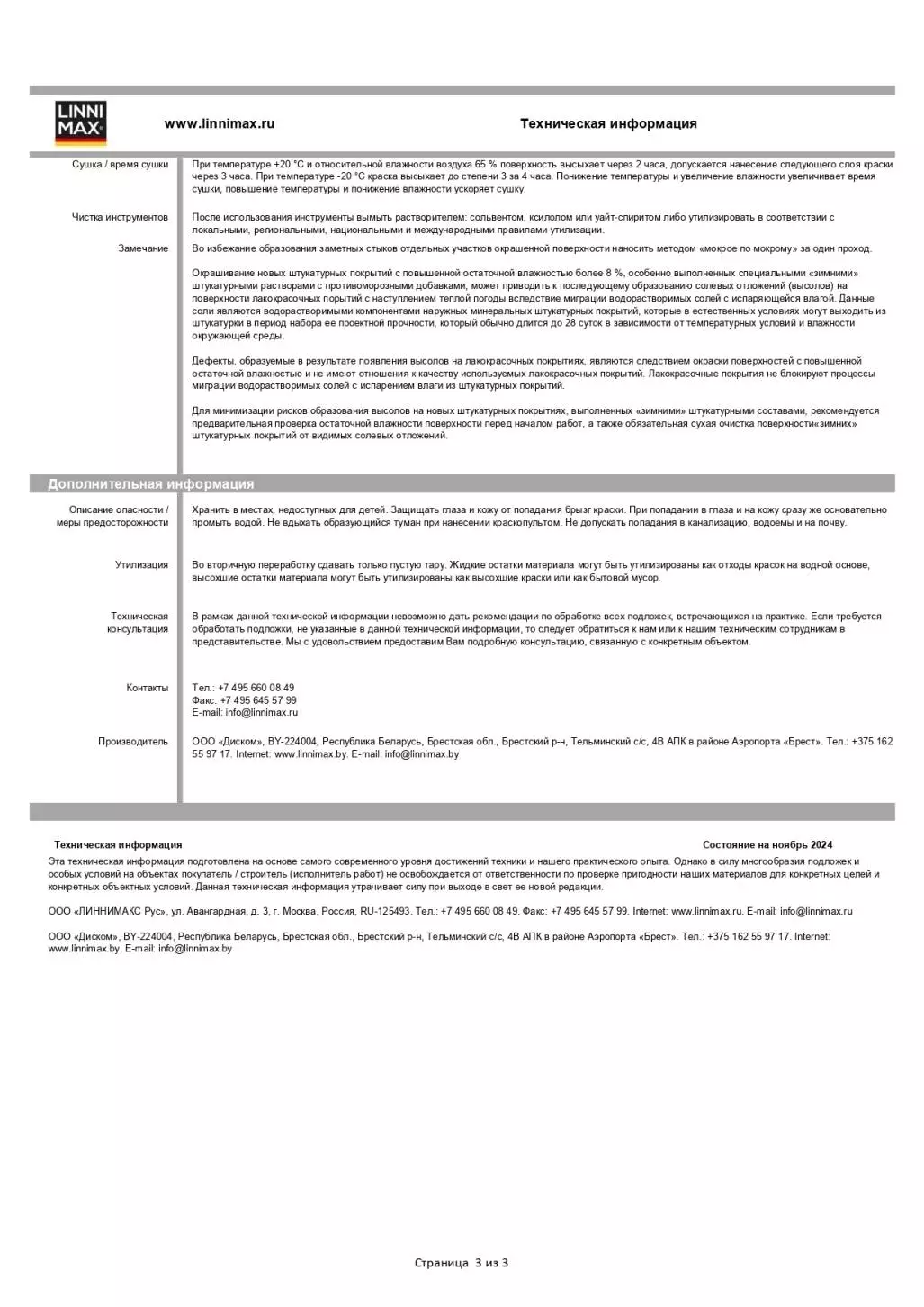 - Толщина сухого слоя, класс 100–200 µм, E3 (при однослойном нанесении)