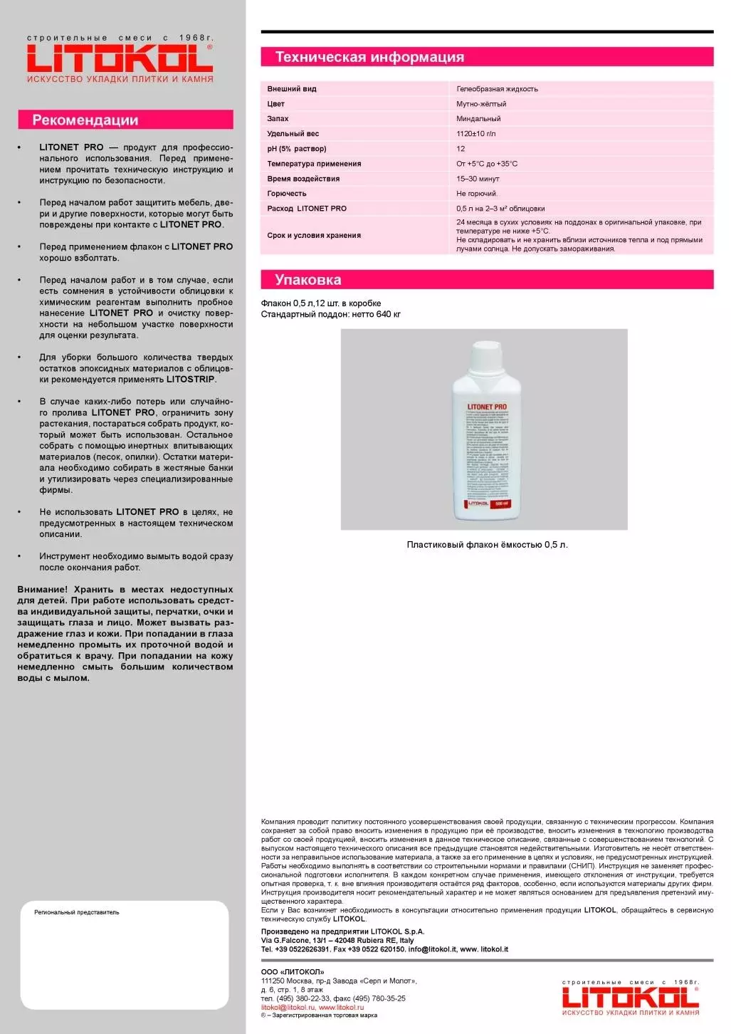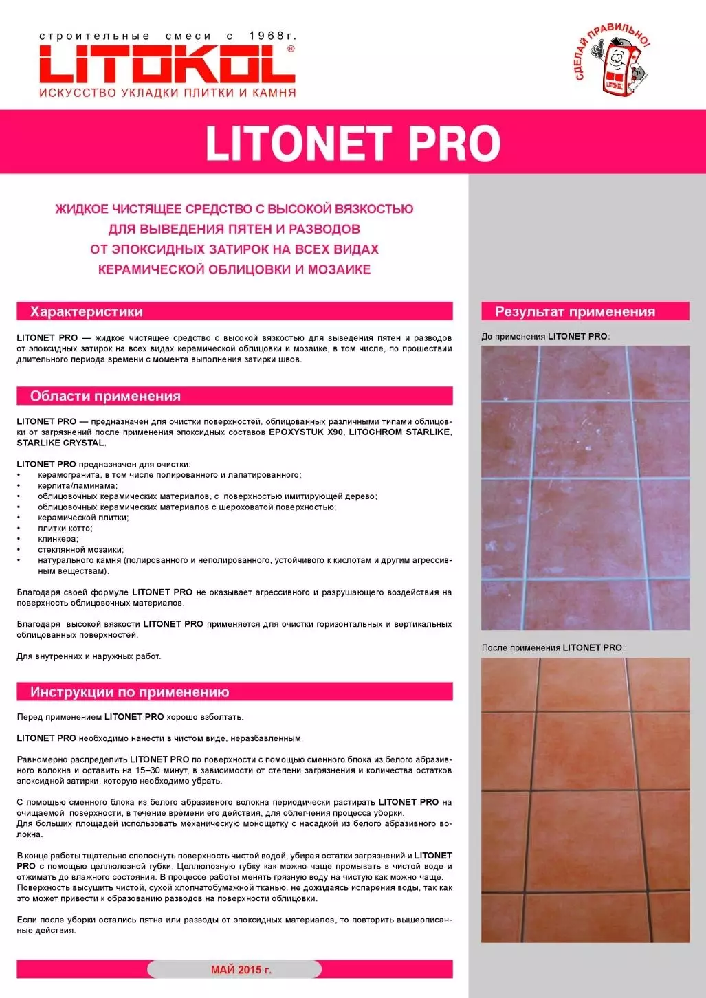 Чистящее средство LITONET PRO не оказывает агрессивного и разрушающего воздействия на поверхность облицовочных материалов.