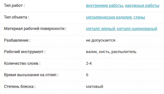 Расход огнезащитной краски для металла: 45 мин при толщине сухого слоя 1,0 мм составляет 1,6 кг/м2; 60 мин при толщине сухого слоя 2,0 мм – 2,8 кг/м2; 90 мин при толщине сухого слоя 2,0 мм – 2,8 кг/м2.
