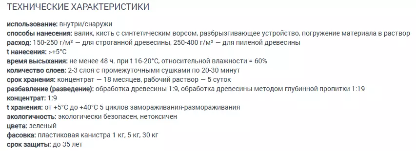 Средство перемешивают и разводят в соотношении один к девяти. Далее состав наносят валиком, кистью или опрыскивателем на поверхность (в два-три слоя с промежуточной сушкой по полчаса) или же погружают деревянные заготовки непосредственно в раствор.