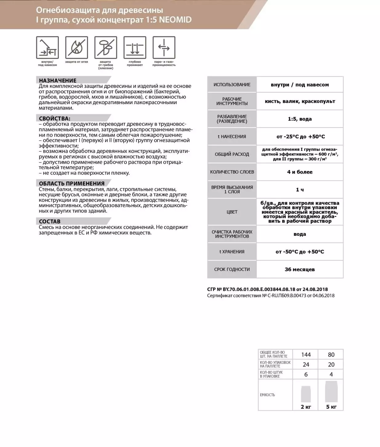 Одним из важнейших недостатков большинства строительных материалов и конструкций является восприимчивость к горению. Для увеличения огнестойкости древесины и материалов на ее основе, может быть использован сухой концентрат Neomid Огнебиозащита 1 группа, сухой концентрат 1:5, подходящий для обработки стропил, несущего бруса и балок, деревянных стен и перекрытий, оконных и дверных блоков. Его можно применять в любых типах помещений, включая административные, производственные, общеобразовательные, дошкольные детские и др.