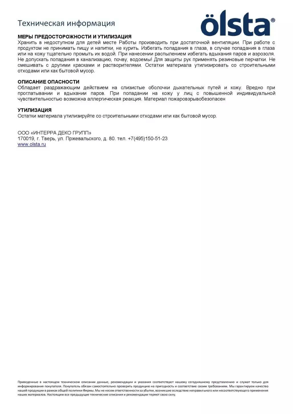 Расход: По подготовленной и загрунтованной поверхности до 14 м²/л. в один слой.