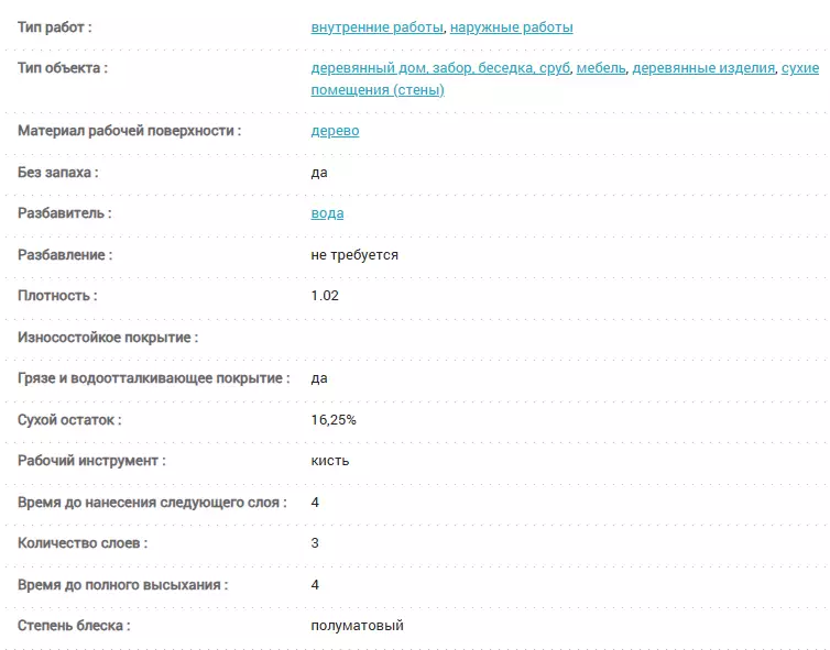 Расход строганая древесина до 12м²/л; пиленая древесина до10м²/л