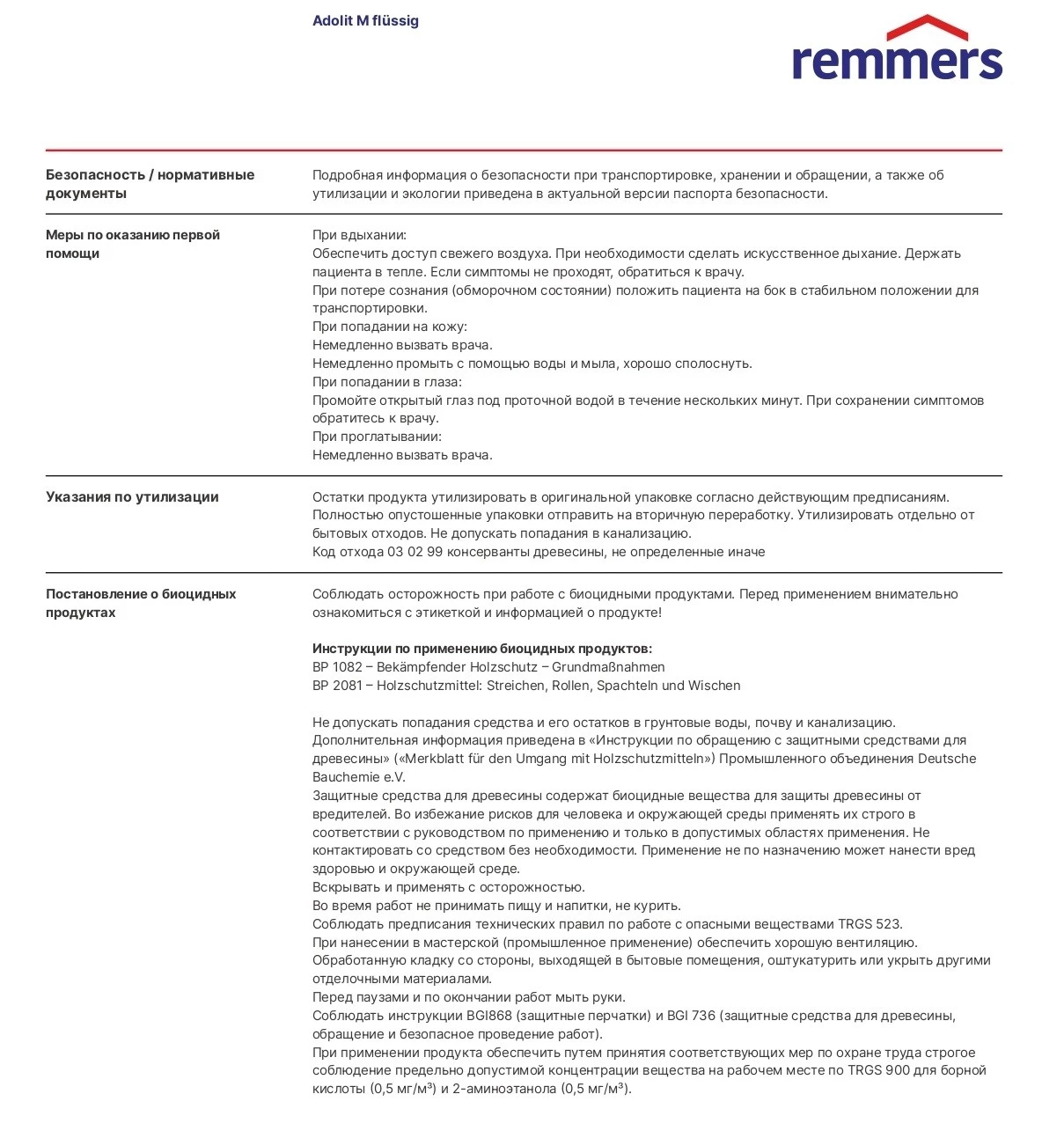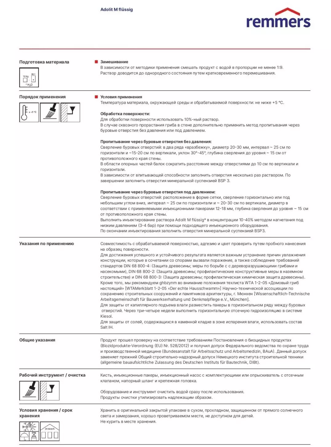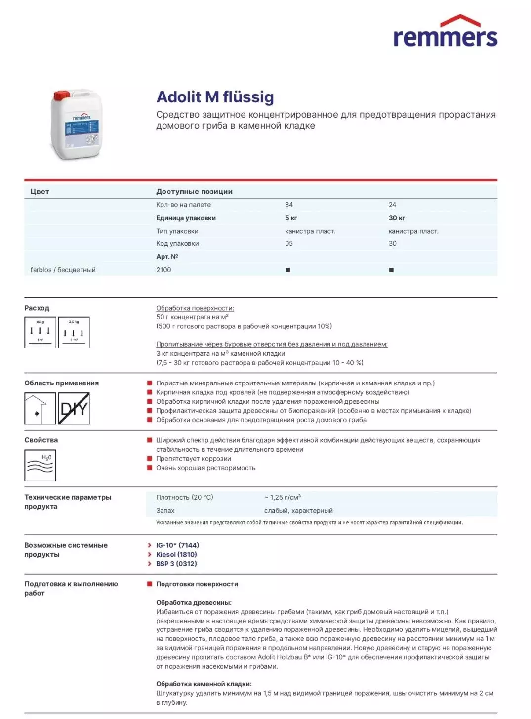 Remmers Adolit M Fluessig Средство защитное концентрированное для предотвращения прорастания домового гриба в каменной кладке