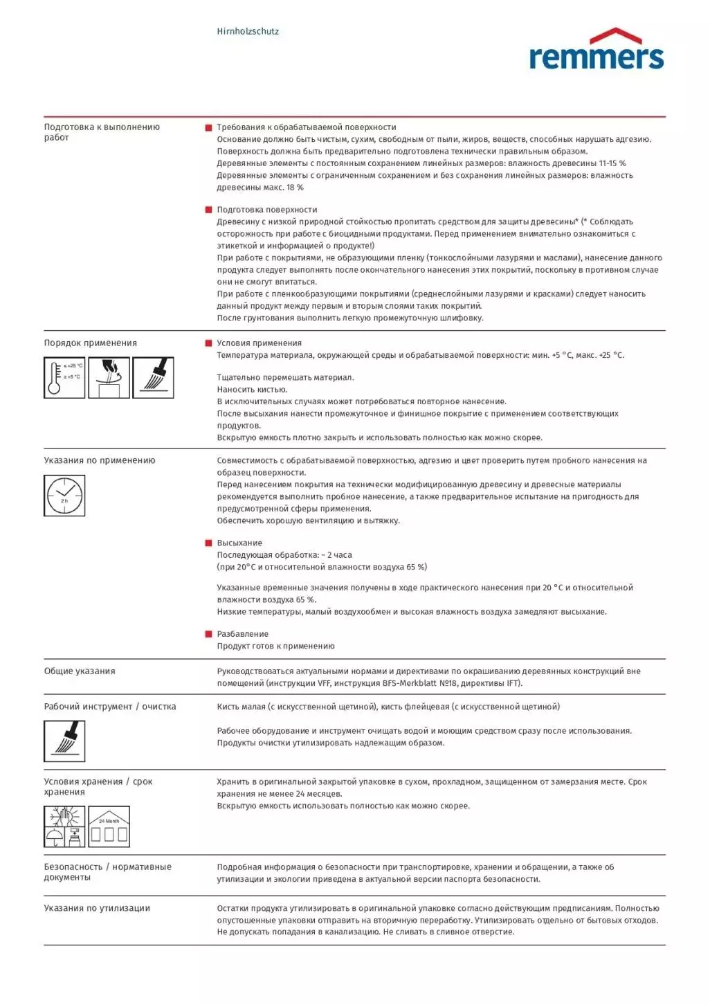 При работе с покрытиями, не образующими пленку (Holzschutz-Creme*, Pflege-Öl, Gartenholz-Öl [eco]), нанесение данного продукта следует выполнять после окончательного нанесения этих покрытий, поскольку в противном случае они не смогут впитаться.