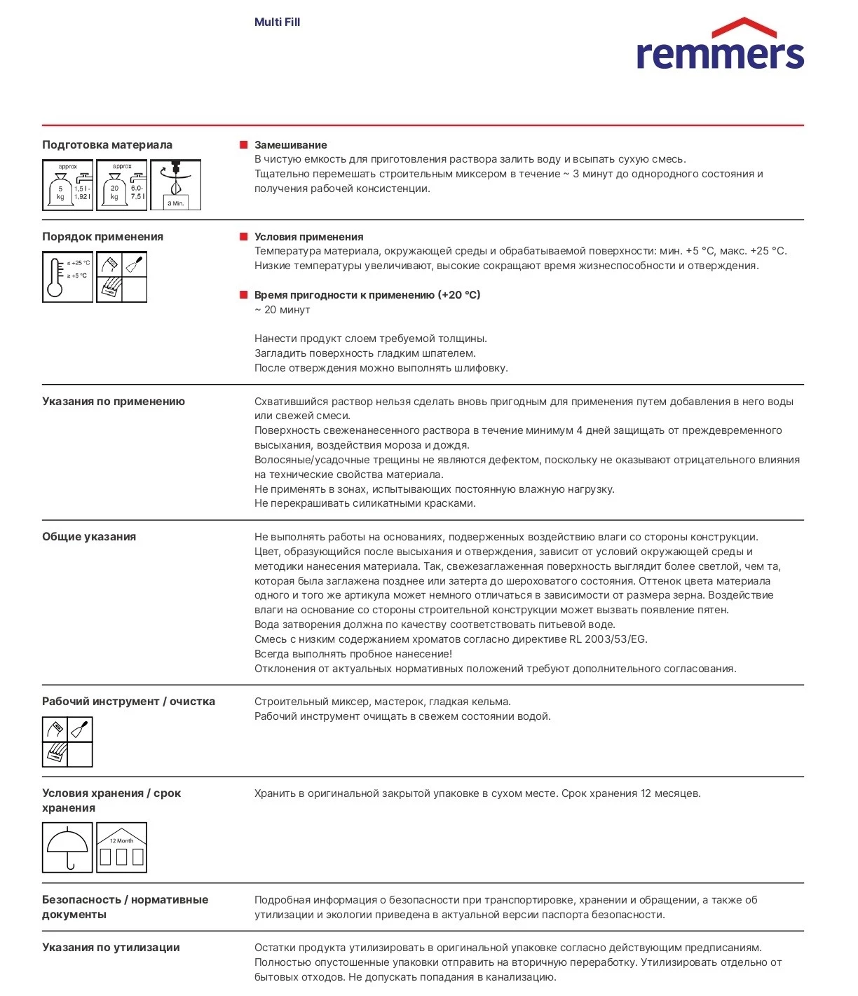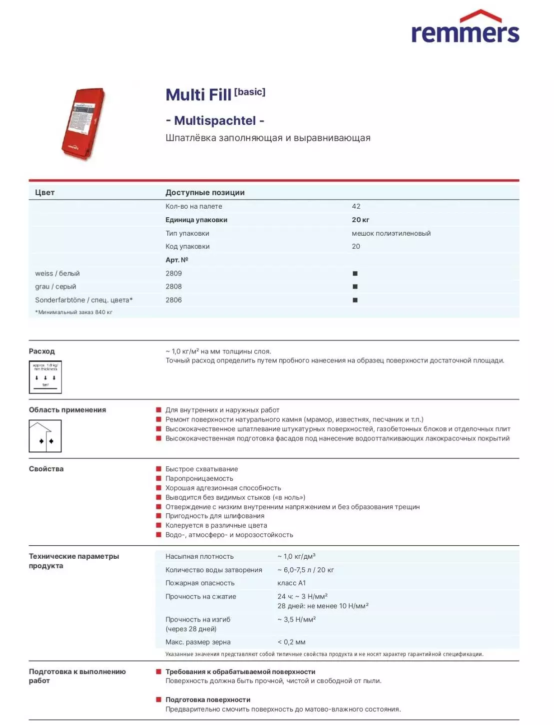 Remmers Multi Fill Multispachtel Шпатлевка заполняющая и выравнивающая