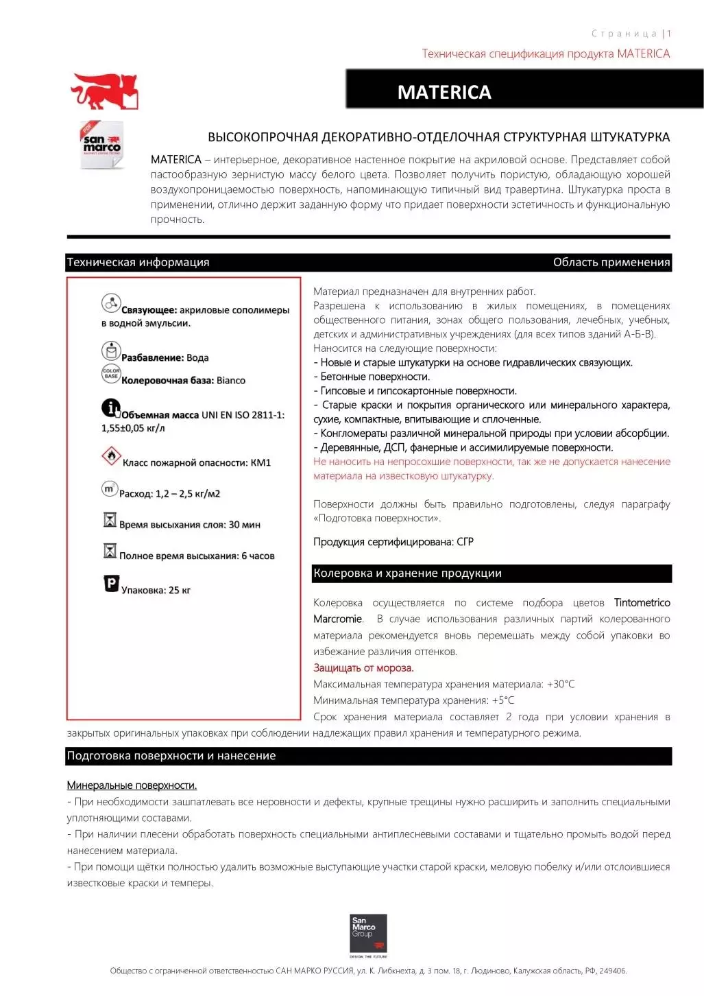 San Marco Materica Декоративная штукатурка структурная на акриловой основе