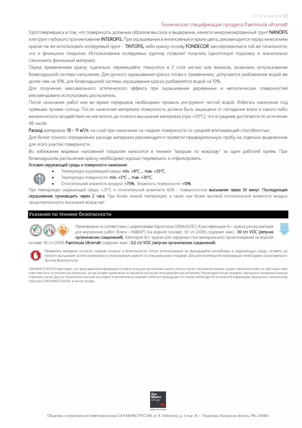 PAENINSULA ULTRAMATT - сверхматовая декоративная краска для внутренних работ. Предназначена для оформления интерьеров с самыми современными стилями и направлениями. Эксклюзивная сверхматовая отделка "ultramatt" с однородным и элегантным внешним видом, тщательный подбор цветов, вдохновленный итальянскими художественными традициями, являются идеальным сочетанием для создания эксклюзивных, современных и модных интерьеров. Высокая укрывистость и пятноотталкивающие свойства облегчают нанесение и уход. Без запаха, без летучих органических соединений (ЛОС) пластификаторов и формальдегида. Пенисула Ультрамат Сан Марко имеет классификацию A+ согласно французскому министерскому указу о качестве воздуха в помещениях.