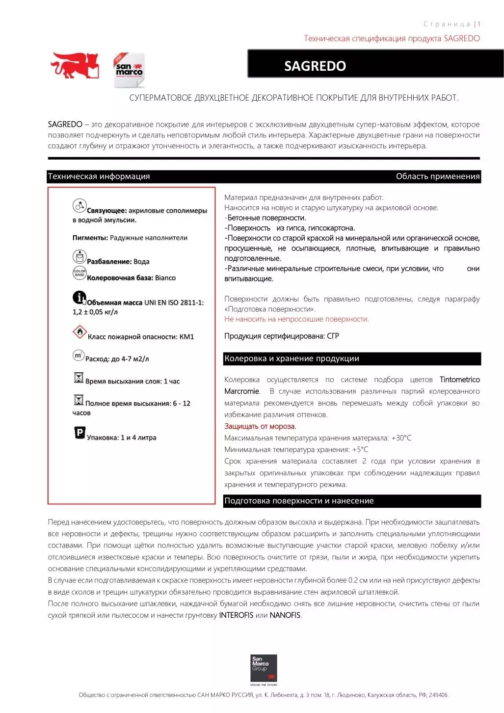 Не наносить на непросохшие поверхности. Продукция сертифицирована: СГР