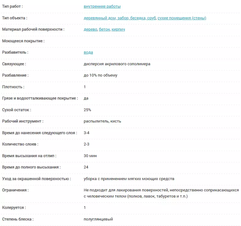 Предназначен для защиты ранее непокрытых деревянных панелей, вагонки, досок, брёвен, а также бетонных и кирпичных поверхностей в сухих помещениях. Не применяется для полов и мебели. Придает поверхности водо- и грязеотталкивающие свойства, защищает от появления плесени.