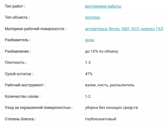 Глубокоматовая краска используется для нанесения на потолки в сухих помещениях. Благодаря безопасному экологичному составу, применять состав можно, в том числе в детских, учебных и лечебно-профилактических учреждениях. Продукт предназначен для покраски как новых, так и ранее окрашенных поверхностей, таких как оштукатуренные, бетонные, зашпатлеванные, кирпичные и гипсокартонные поверхности, древесностружечные и древесноволокнистые плиты внутри помещений.