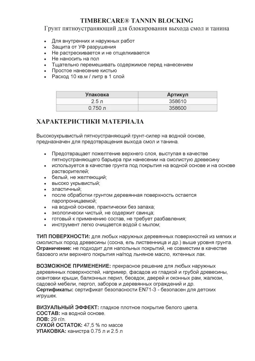Высокоукрывистый пятноустраняющий грунт-силер на водной основе, предназначен для предотвращения выхода смол и танина.